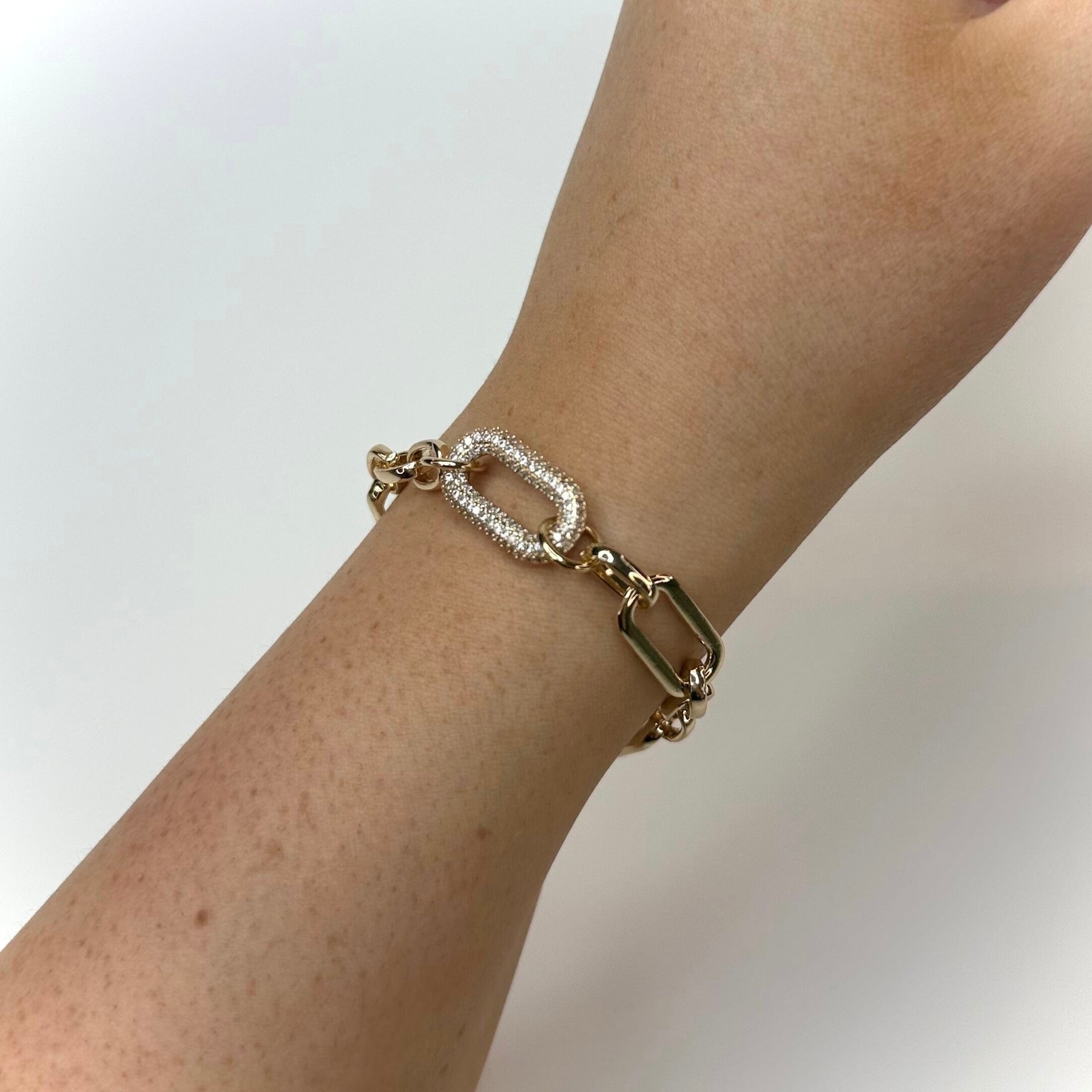 - Chain-Link Crystal Clasp Bracelet In Gold-Tone